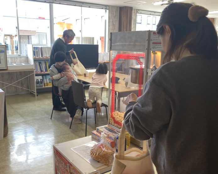 ぜんざいと、香ばしいポップコーンを無料でご提供。