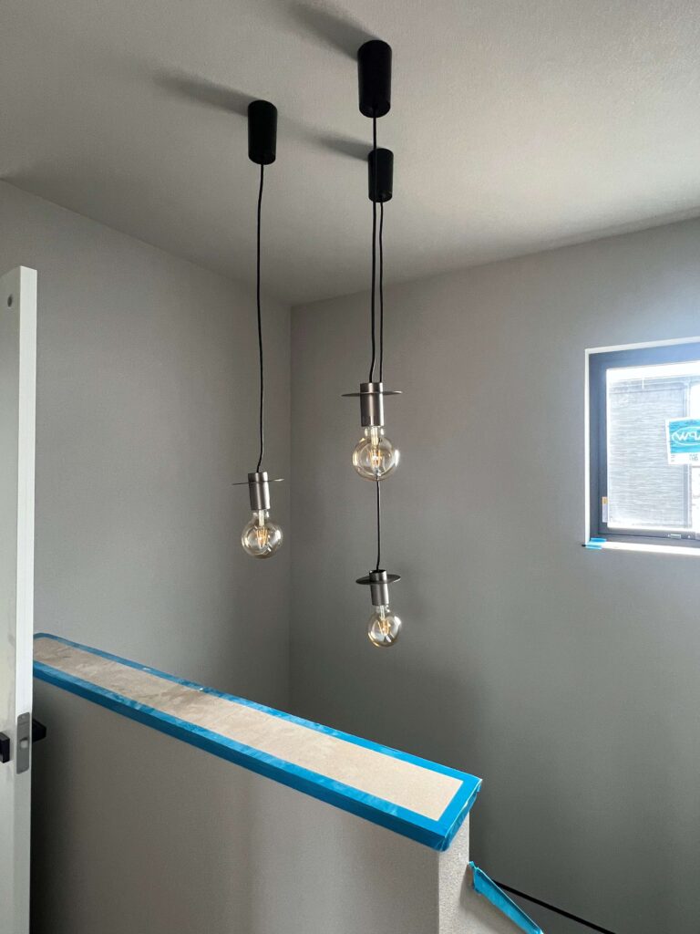 階段室にペンダントライトを3灯つけるのに、コードの長さを職人さんにお願いして
