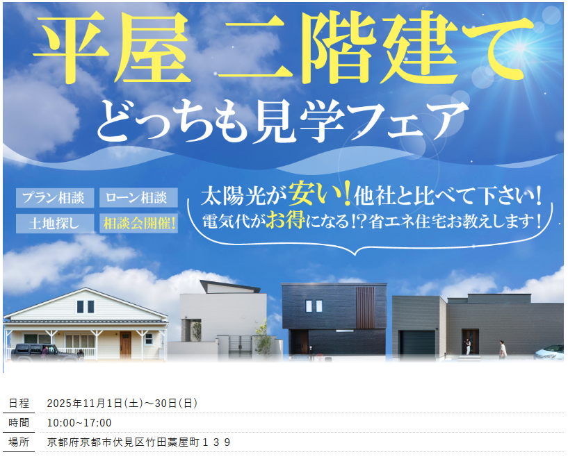- 【見学会 at 京都市】平屋&2階建てどっちも見学フェア(京都店)
