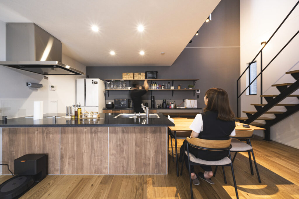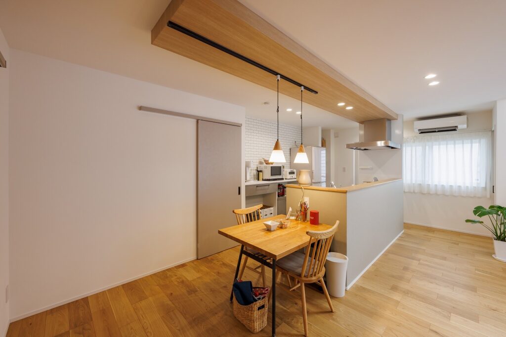 横並びダイニングとは、キッチンとダイニングテーブルを横並びにしたレイアウトのことで