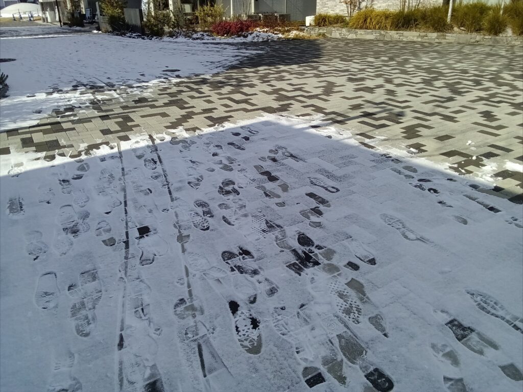 そうです。日の当たっているところは雪が溶けているんです👀