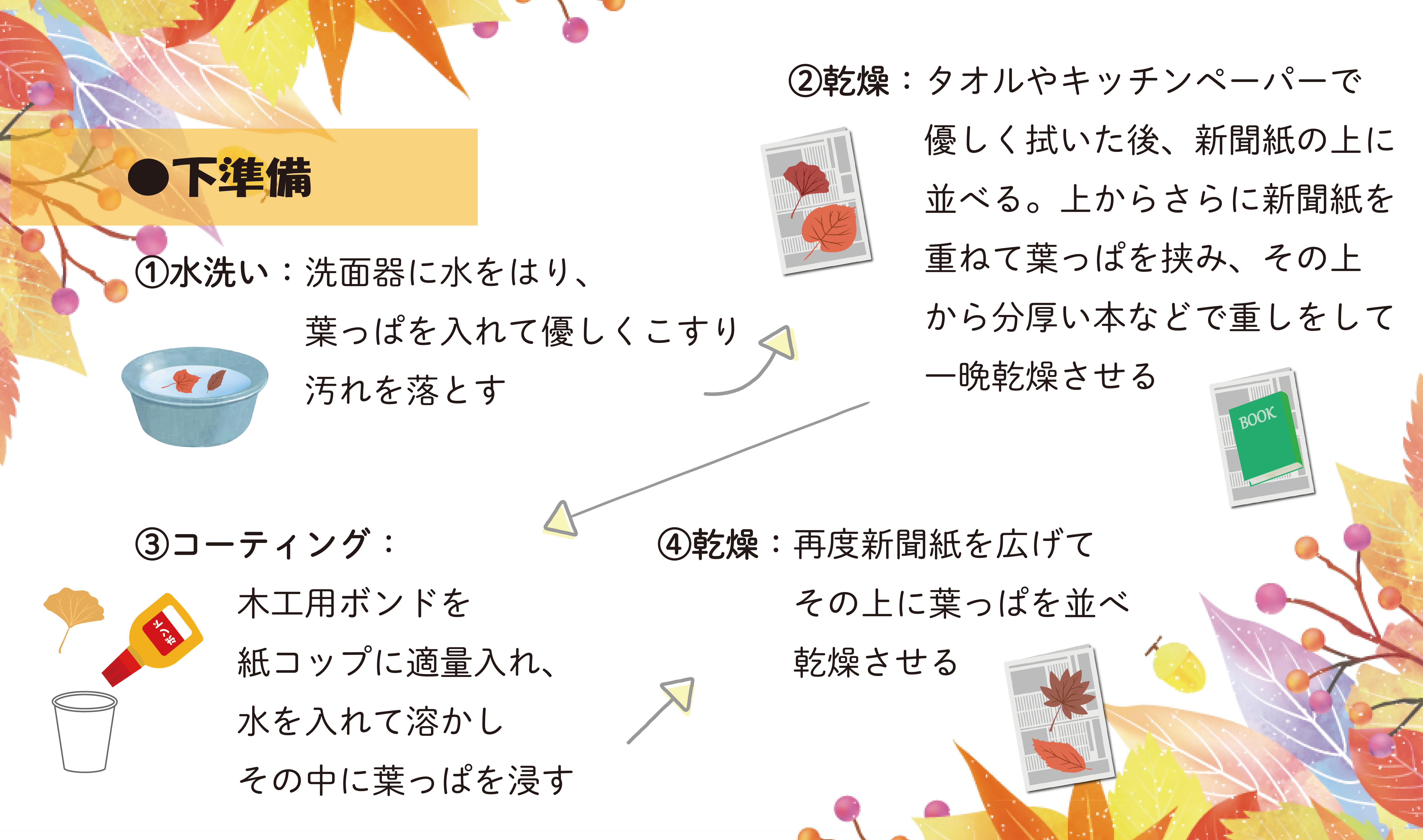 綺麗なしおりを作るためにも必要過程なので、葉っぱの変化も楽しみながら作っていきましょう!