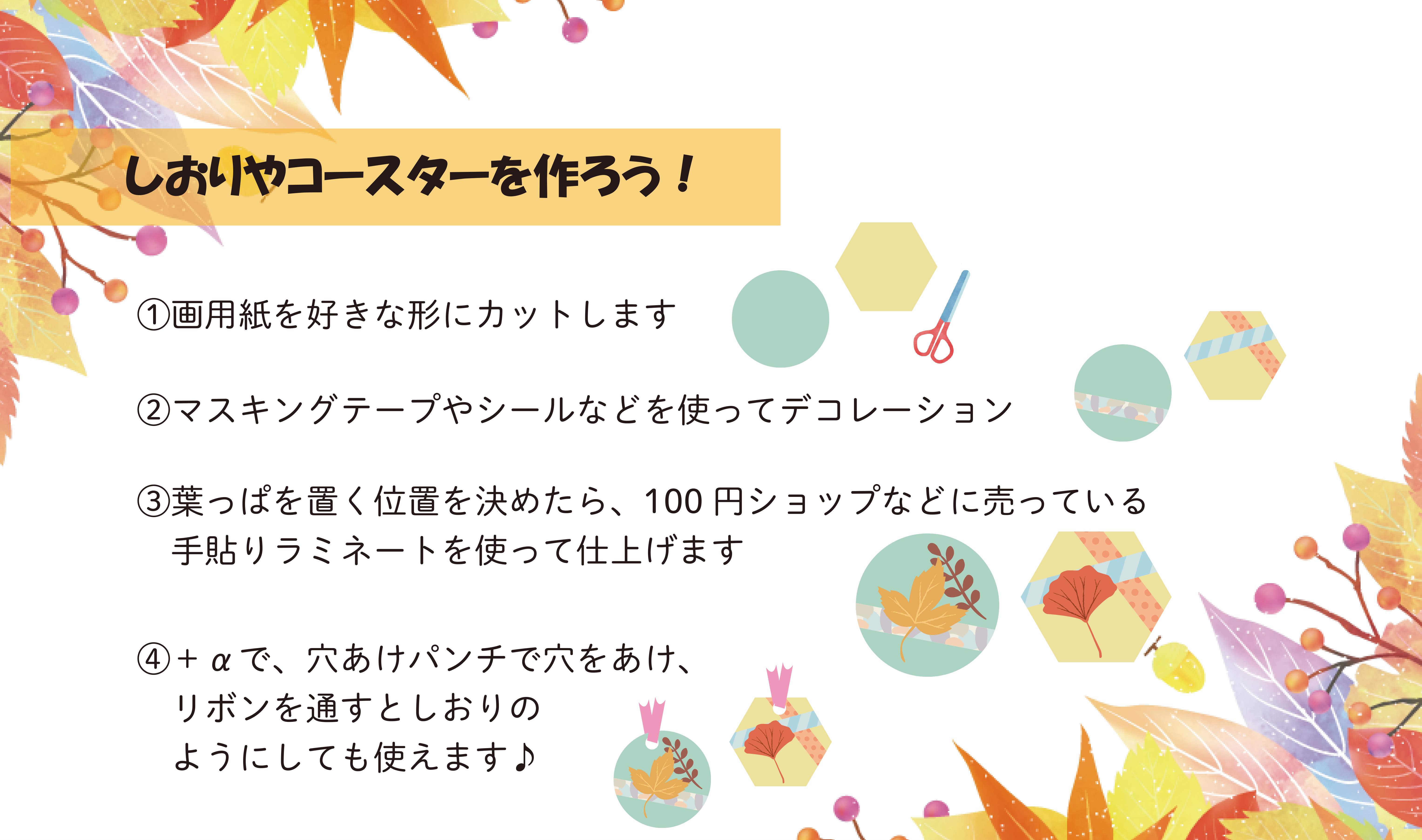 カラフルな紅葉を使って自分だけのオリジナルコースターを作ってみよう!