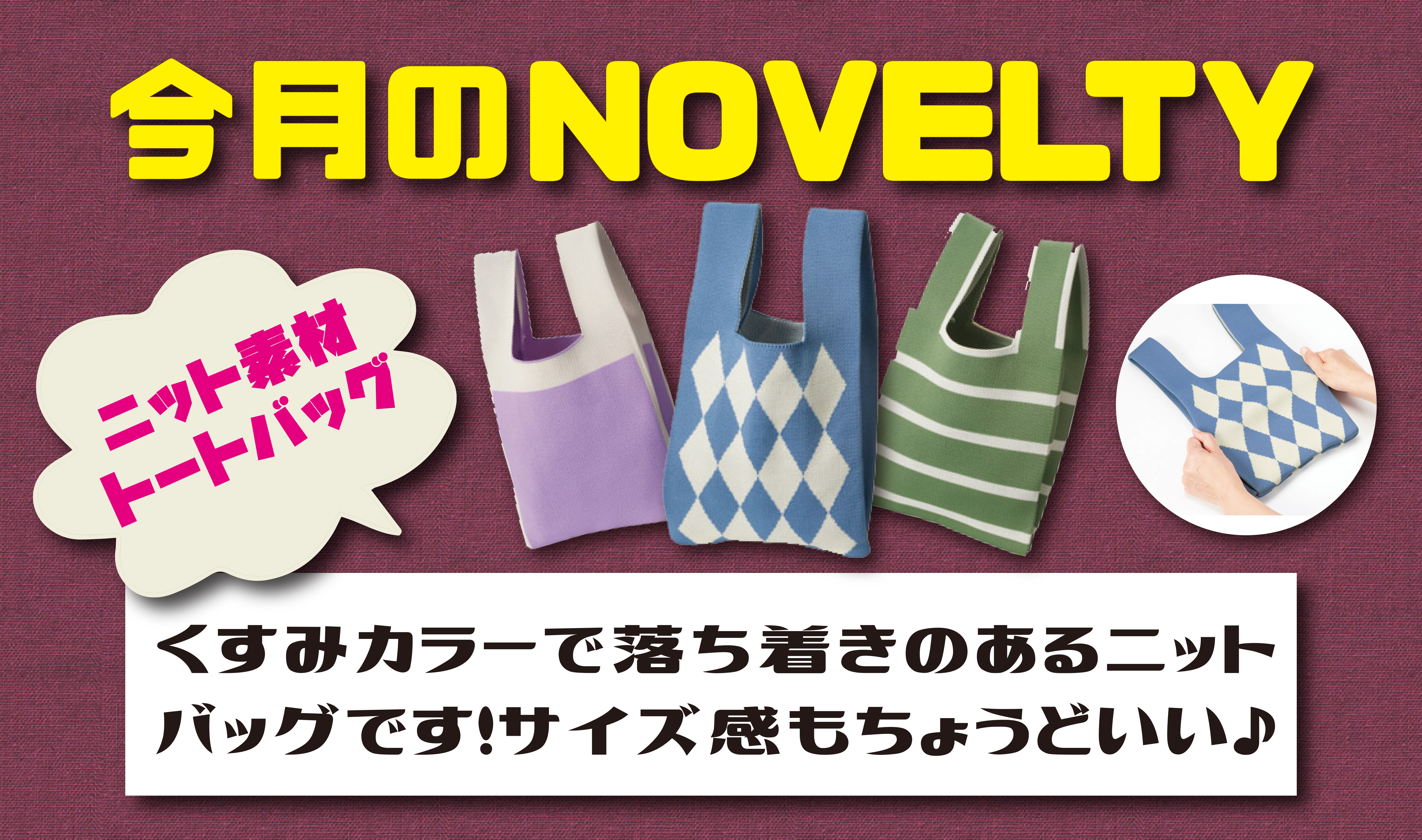 11月のご来場特典は、もつだけでおしゃれになる秋らしいニット素材のトートバッグです。