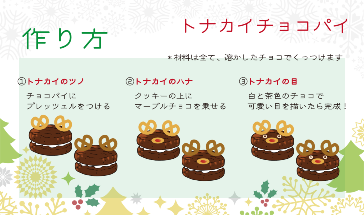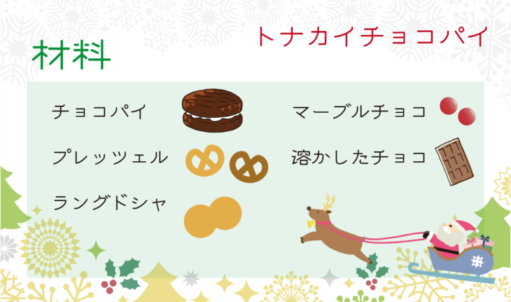 今月はクリスマスパーティーにも使える、市販のお菓子を使った