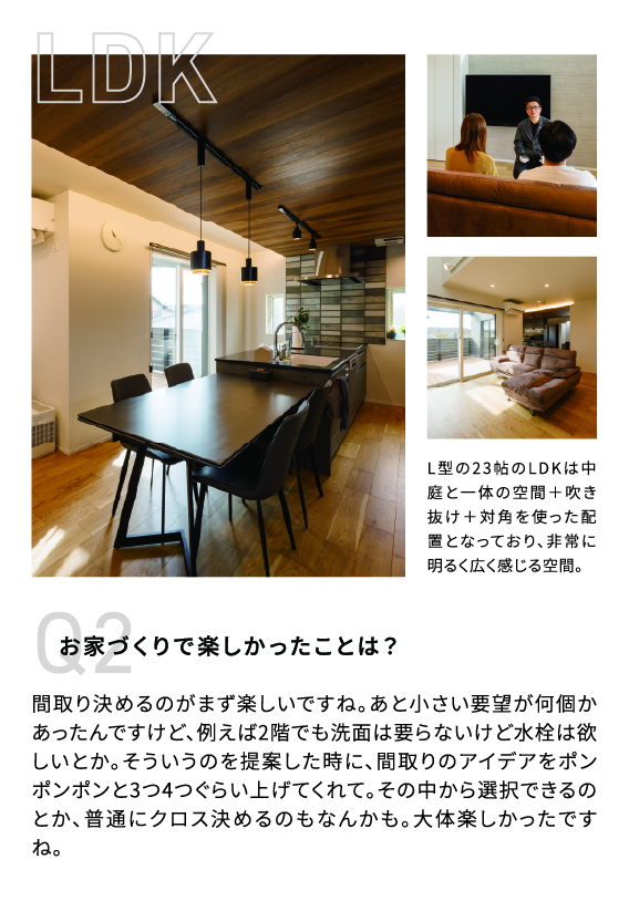 個室書斎や10帖の中庭といった「くつろぎの空間」を大切にしながら、高断熱仕様の「超暖」を組み合わせて、デザイン性と快適な住環境を両立させました。