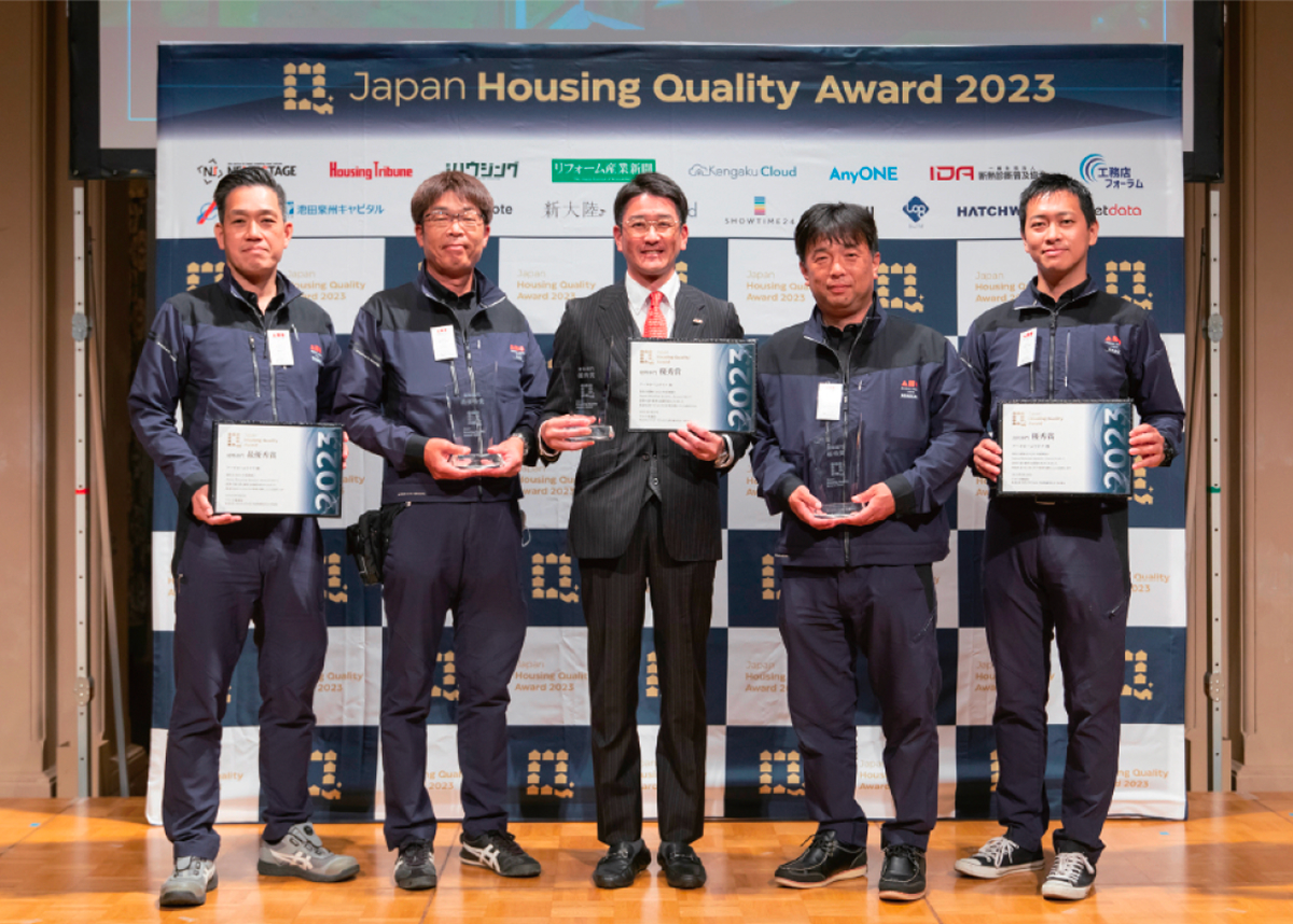 ジャパン・ハウジング・クオリティ・アワードにおいて、施工の正確さや現場管理体制が評価され、最優秀賞を受賞しました。デザインだけでなく、見えない工程まで丁寧につくり続けてきた姿勢が、第三者機関から認められました。
