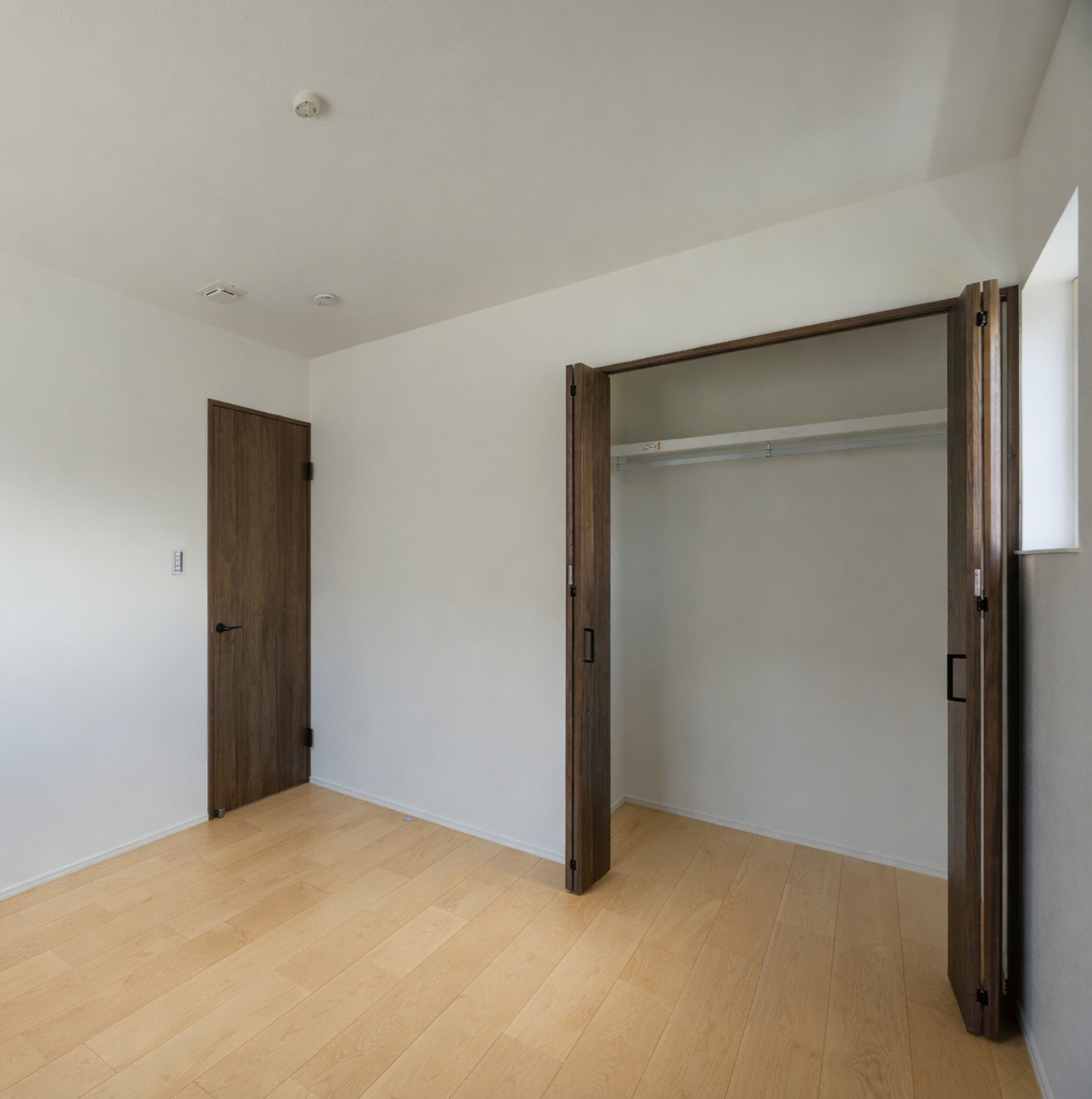 2階の3部屋すべてに収納を配置。主寝室には2.5帖のウォークインクローゼットを設け、夫婦の衣類をまとめて管理できます。
