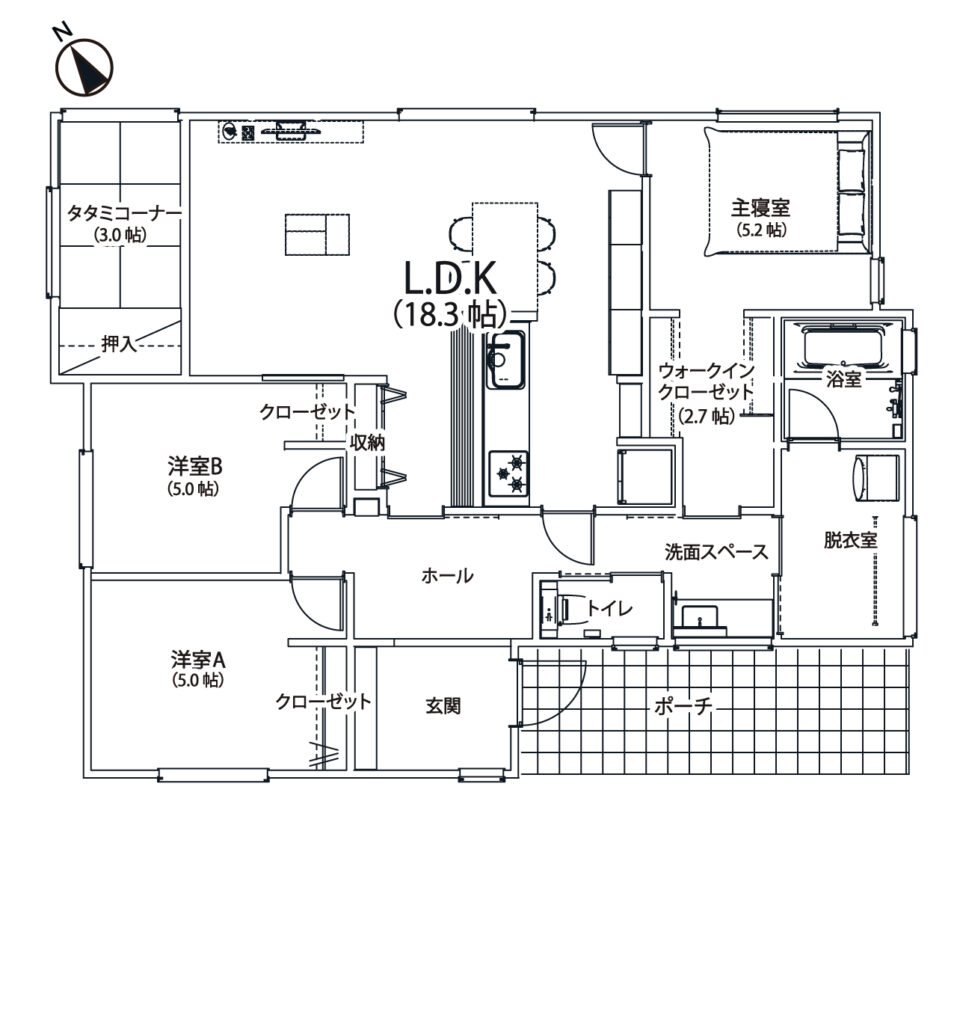 リビングとつながる3畳のタタミスペースは、お昼寝や来客時など多目的に活躍します!
