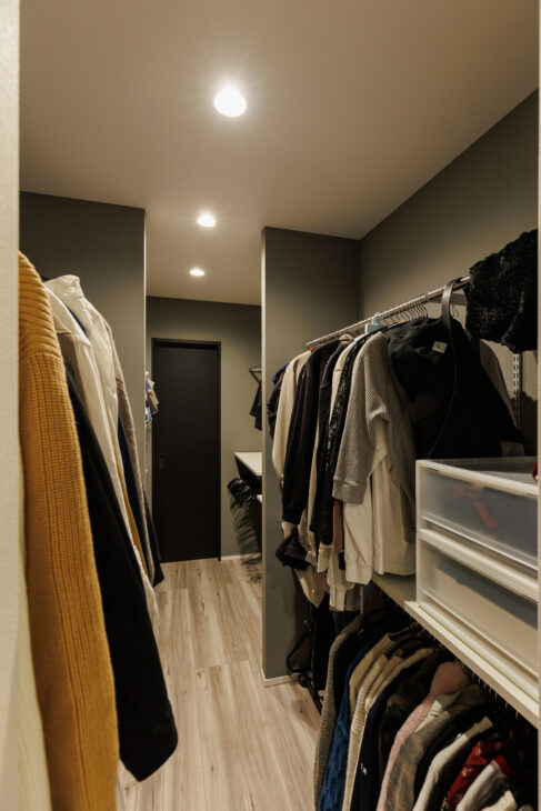 4.0帖のWICで衣類や季節家電をまとめて収納。寝室をすっきり保ちながら生活動線も確保