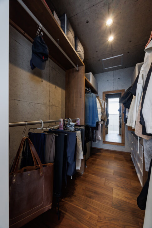 家族の衣類や季節用品をまとめて収納できる大容量スペース。一か所に収納することで身支度しやすい生活動線が実現