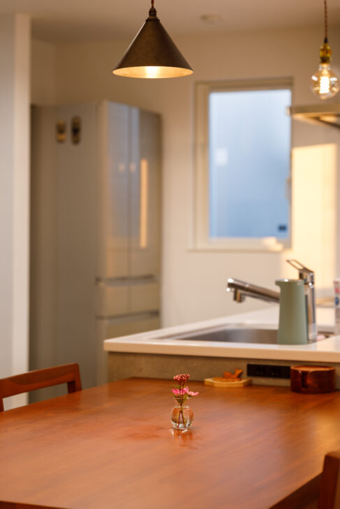 キッチンとダイニングが横並びなので動線が短く、配膳や片付けがとてもスムーズ。