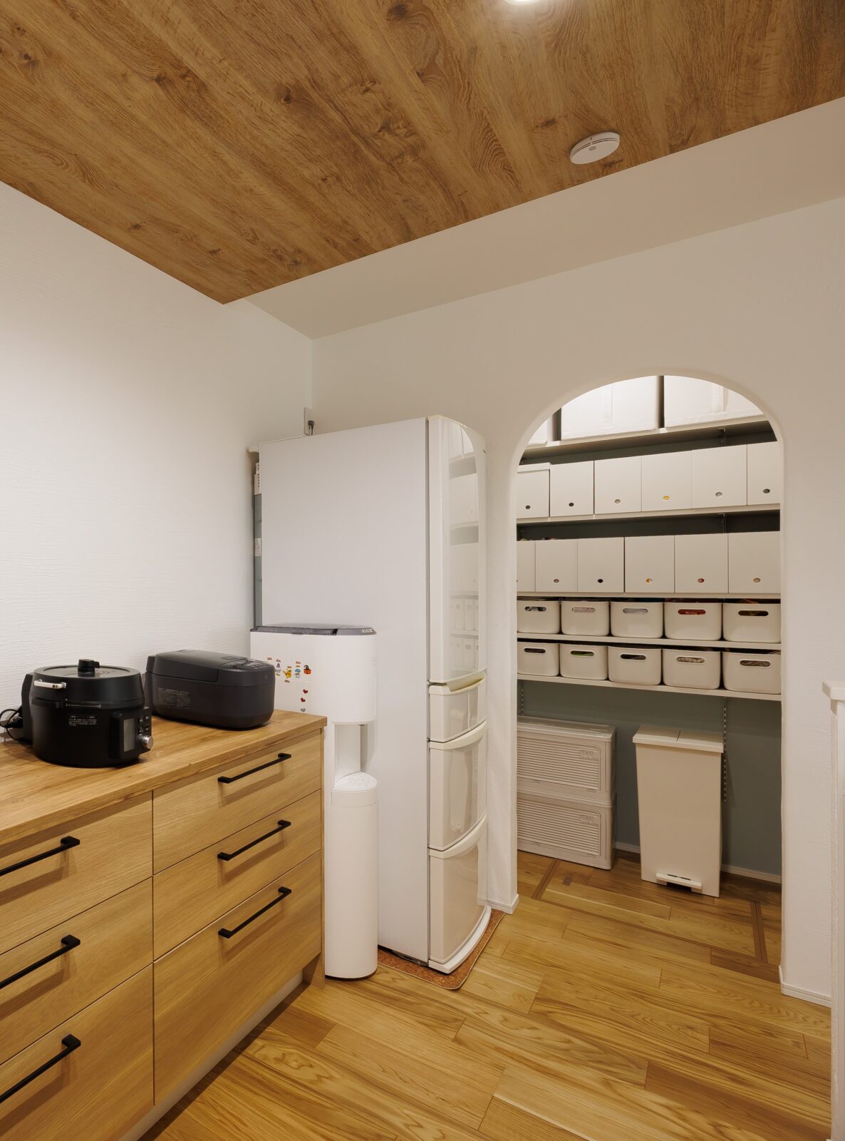 【R垂れ壁がおしゃれな、隠せる大容量パントリー】
