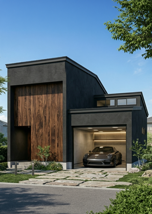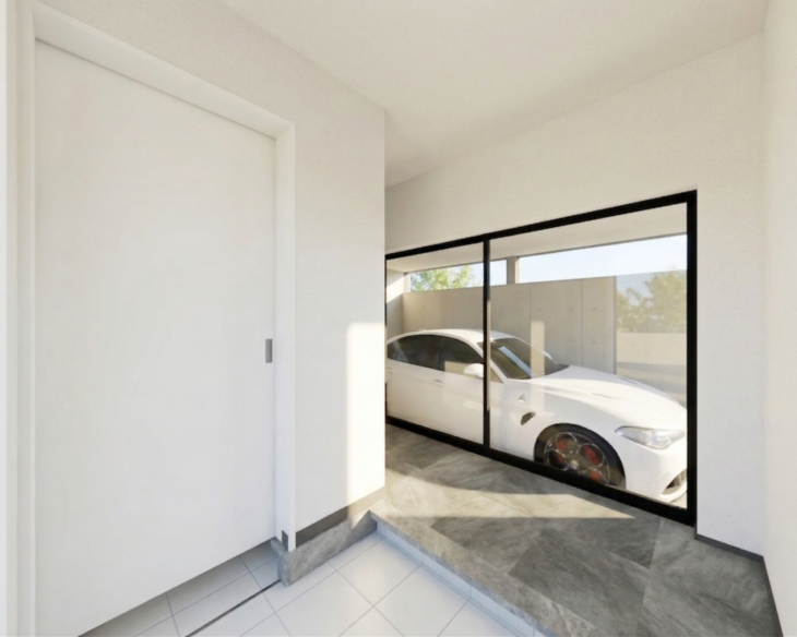 リビングや玄関から愛車を眺められるビルトインガレージ。