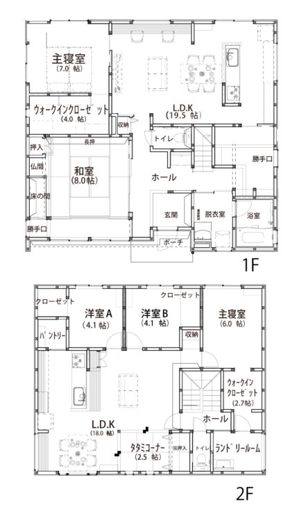 (2F子世帯)親世帯も子世帯も、広い勝手口やパントリーを備えられているので“しまう×運ぶ”がスムーズ!