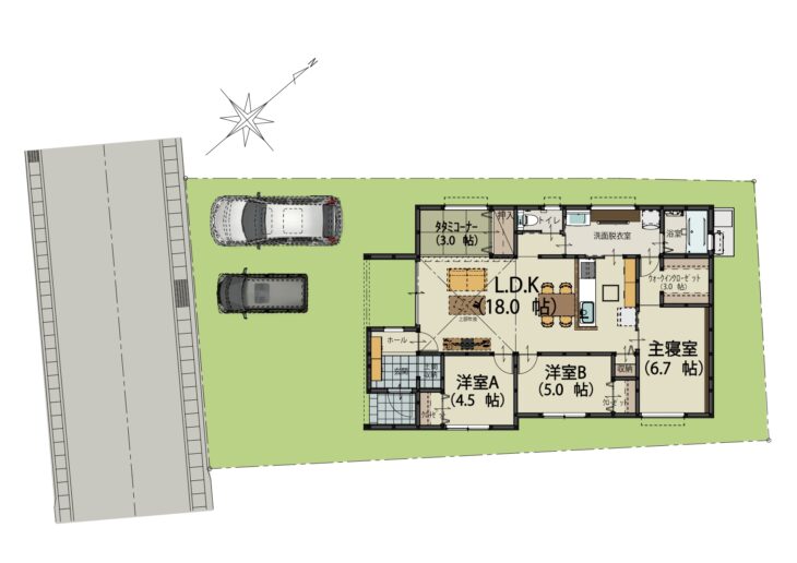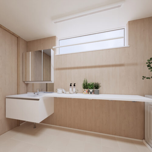 - ゆとりのある洗面脱衣室はランドリースペースにも