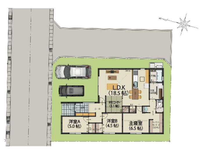 LDKを中心に家族が自然と集まる開放的で暮らしやすい間取りです。