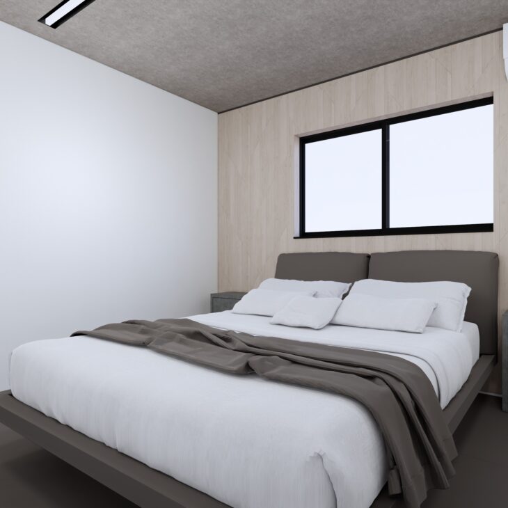 落ち着きとぬくもりに包まれた主寝室。主寝室横には、廊下からも出入りできるウォークインクローゼットを配置し洗濯動線を短縮。