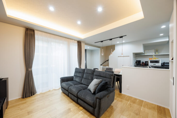 折り上げ天井に間接照明が素敵な上質で開放的なLDK