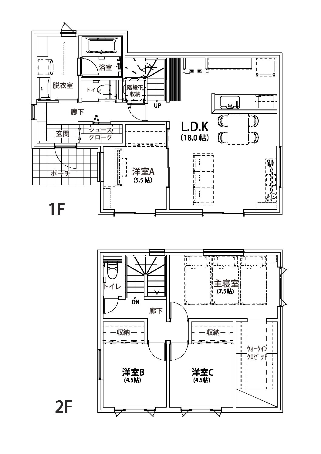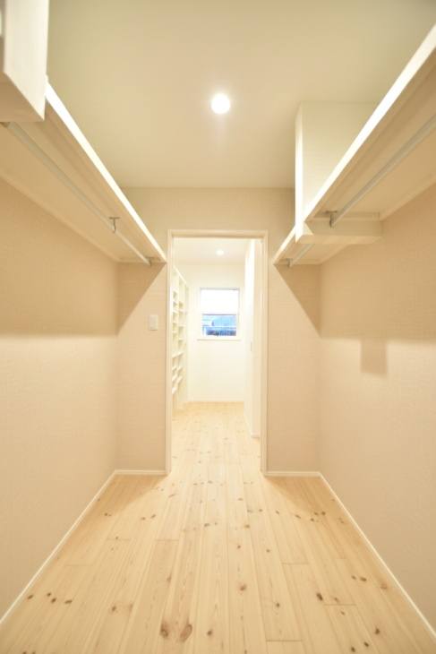 主寝室横のウォークインクローゼットや玄関横の収納が、忙しい朝や帰宅後の動きをスムーズにします。