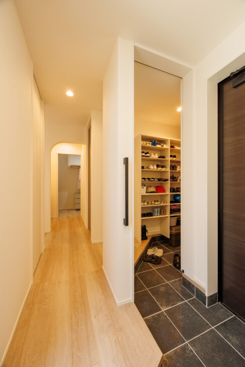 玄関横に設けたシューズクロークは、来客時も生活感を見せず、いつでも整った玄関を保てます。