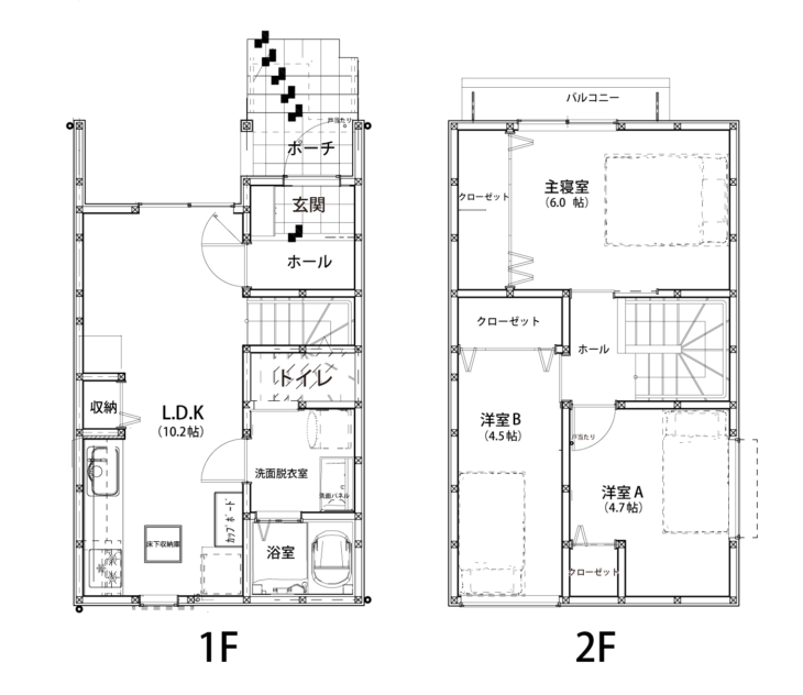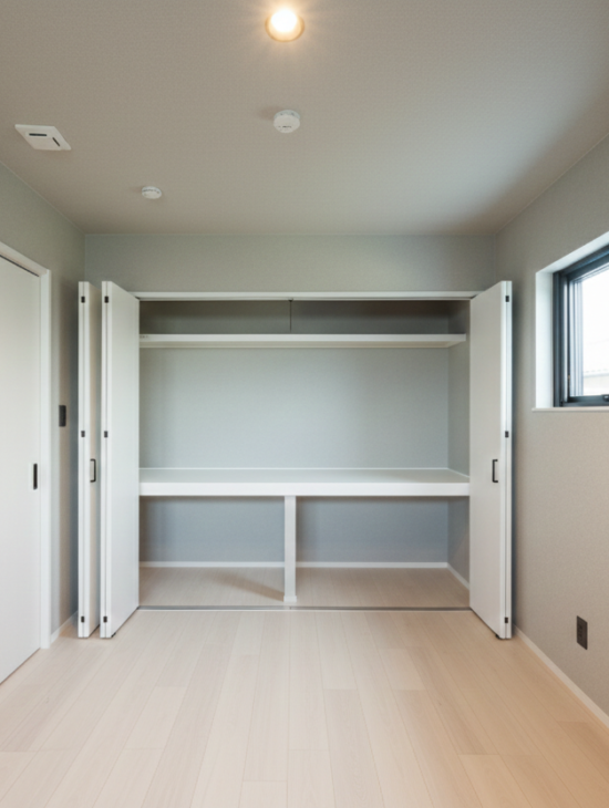 全ての洋室にクローゼットを備え、さらに主寝室にはワイドなクローゼットを設けることで、収納家具を置かずに部屋を広く使えます