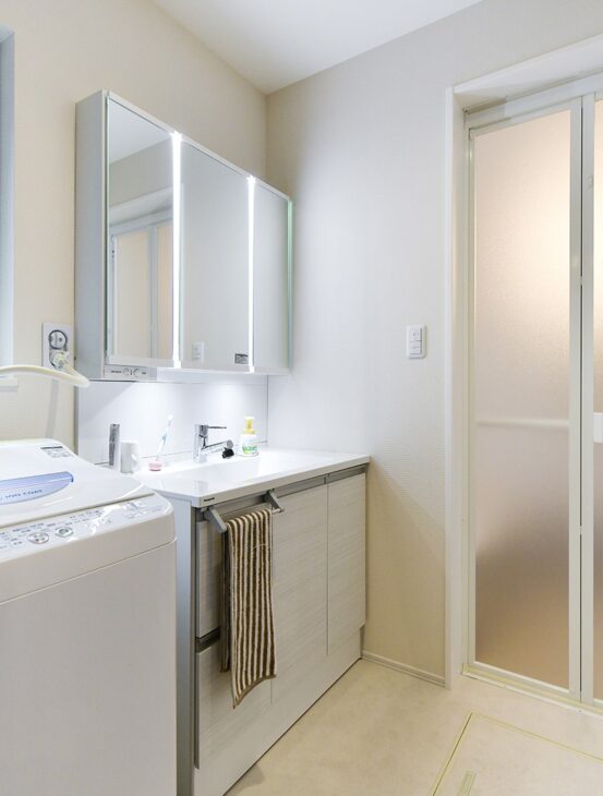 キッチン、洗面脱衣室、浴室をワンフロアの最短距離に集約した機能的な水回り動線