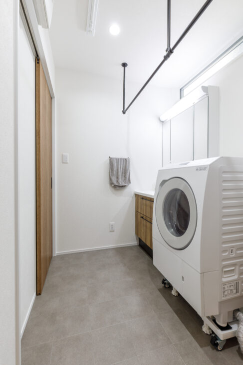 ホスクリーン付き脱衣室で、室内干しも安心。