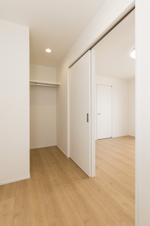寝室横で使いやすい、ゆとりあるウォークインクローゼット。