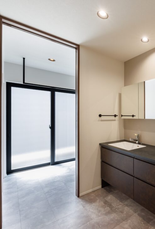 2階には、独立洗面からランドリー、浴室へと繋がる無駄のないスマートな家事動線。