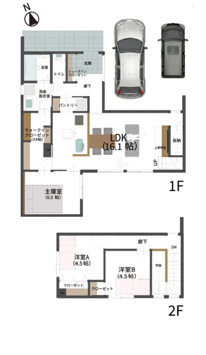 ウォークインクローゼットやパントリーなど各所に収納を確保。