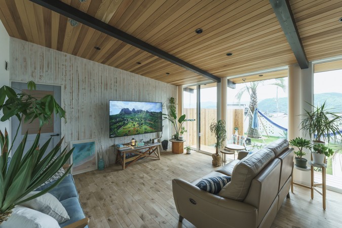 天然石は木との相性もよく、まるで南国にいるかのようなリゾート感と高級感を醸し出します。