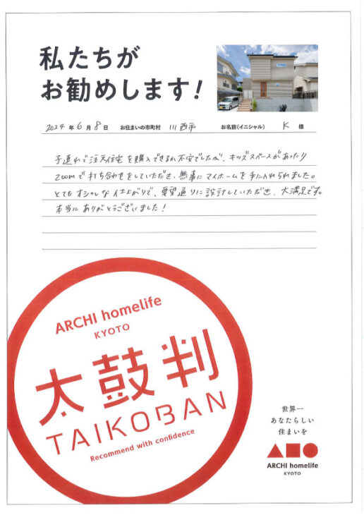 子連れで注文住宅を購入できるか不安でしたが、キッズスペースがあったり、zoomで打ち合わせをしていただき、無事にマイホームを手に入れられました。
