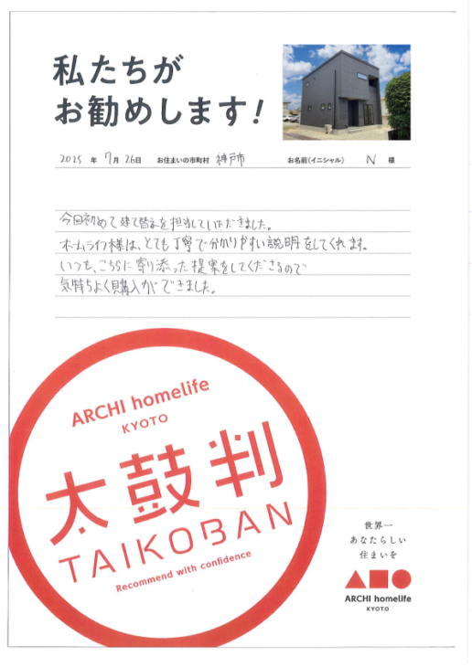アーキホームライフ様は、とても丁寧で分かりやすい説明をしてくれます。