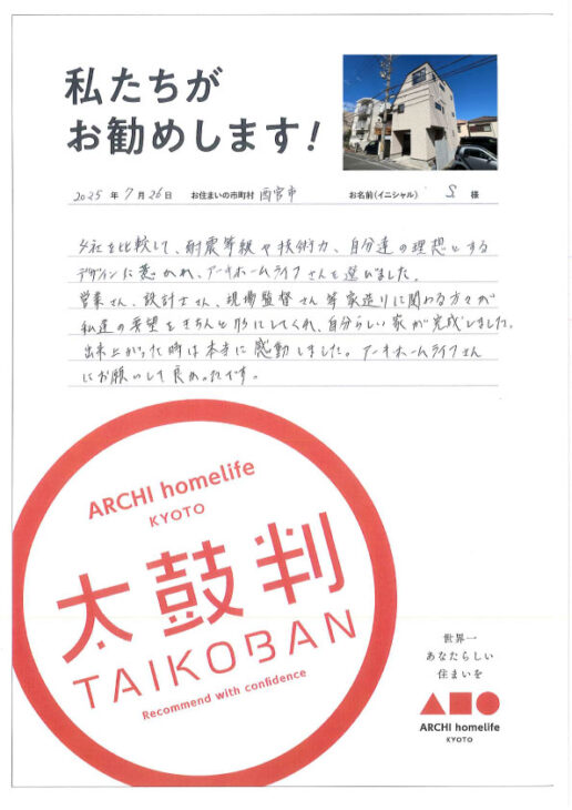 4社を比較して、耐震等級や技術力、自分たちの理想とするデザインに惹かれ、アーキホームライフさんを選びました。