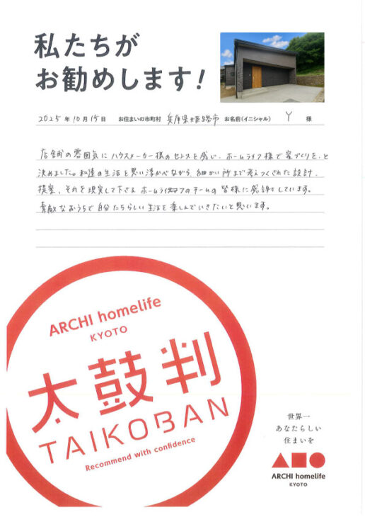 店舗の雰囲気にハウスメーカー様のセンスを感じ、アーキホームライフ様で家づくりを、と決めました。