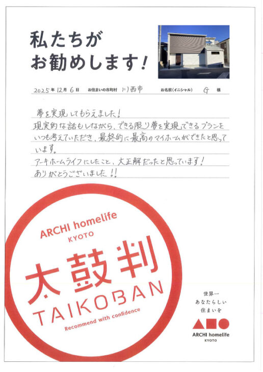 現実的な話もしながら、できる限り夢を実現できるプランをいつも考えていただき、最終的に最高のマイホームができたと思っています。