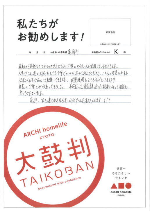 最初から最後までわがままを言わせてもらって、夢のマイホームを実現していただきました。