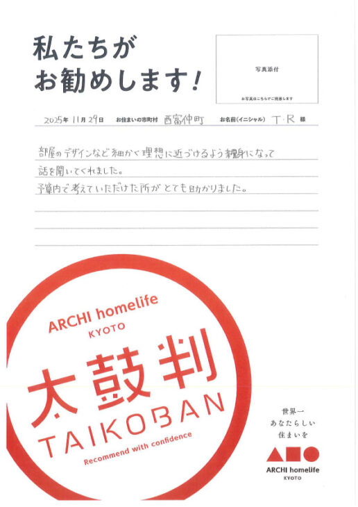 京都市 T様 ★ ★ ★ ★ ★ 5.0 京都店 京都市 T様 部屋のデザインなど細かく理想に近づけるよう親身になって話を聞いてくれました。 予算内で考えていただけたところが、とても助かりました。 < 前のレビューへ 次のレビューへ >