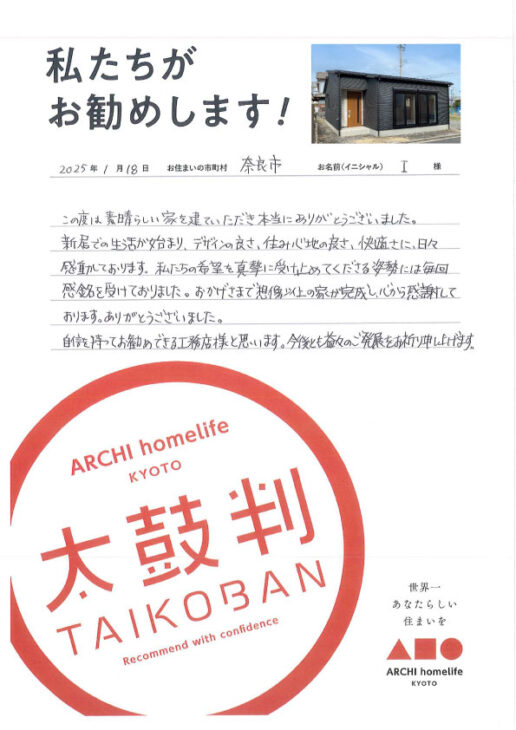 この度は素晴らしい家を建てていただき、本当にありがとうございました。