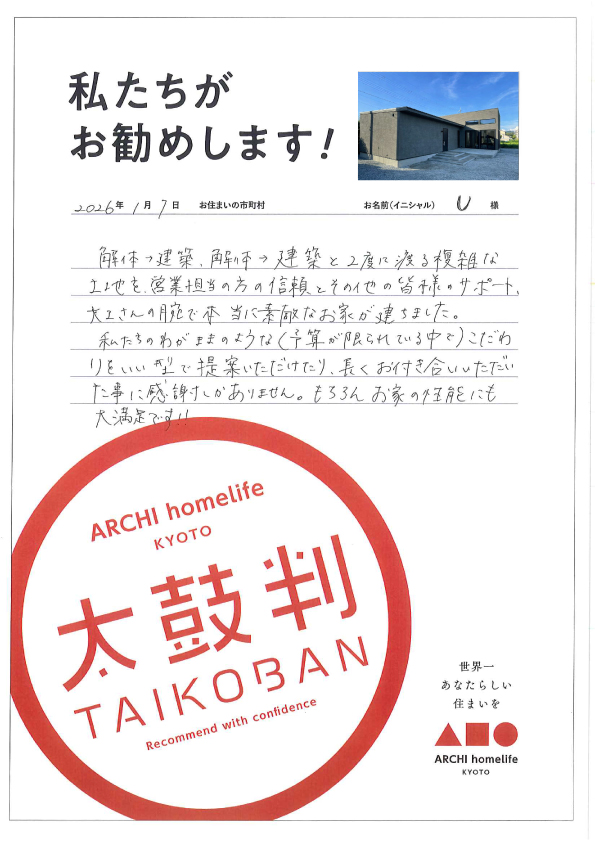 私たちのわがままのような(予算が限られている中で)こだわりをいい型で提案いただけたり、長くお付き合いいただいたことに感謝しかありません。
