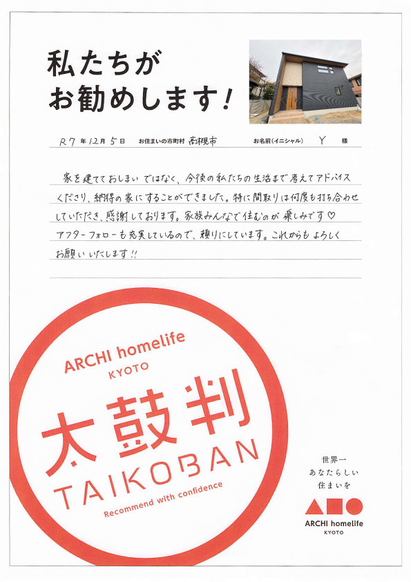 家を建てておしまいではなく、今後の私たちの生活まで考えてアドバイスくださり、納得の家にすることができました。