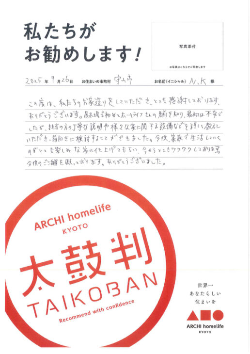 この度は、私たちのお家づくりをしていただき、とても感謝しております。