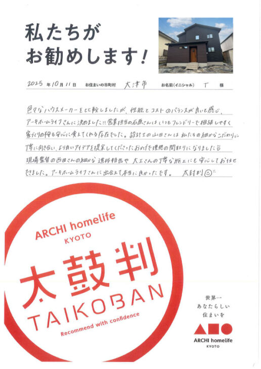 いろいろなハウスメーカーを比較しましたが、性能とコストのバランスが良いと感じ、アーキホームライフさんに決めました!!