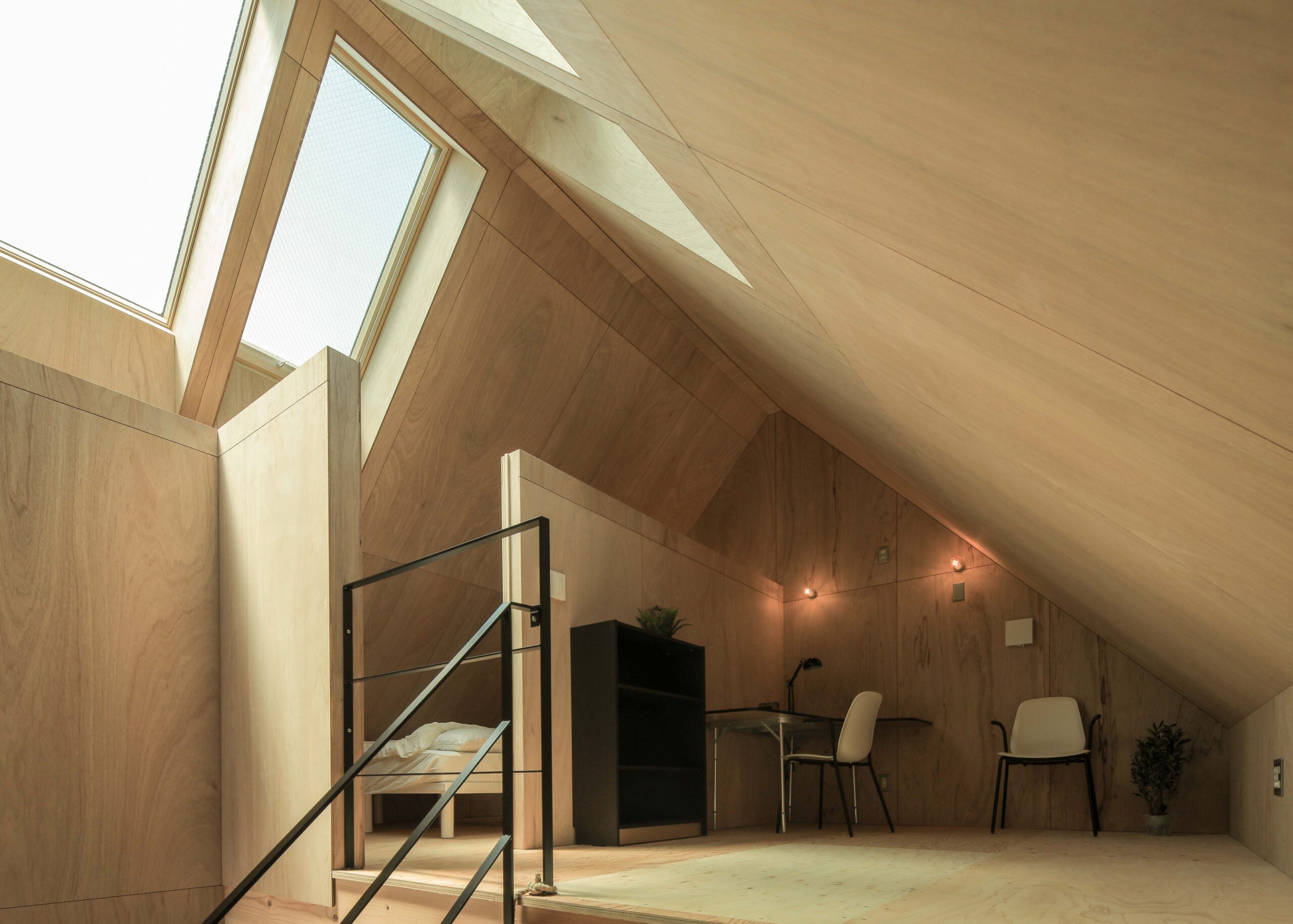 勾配天井と天窓が生む光と空間