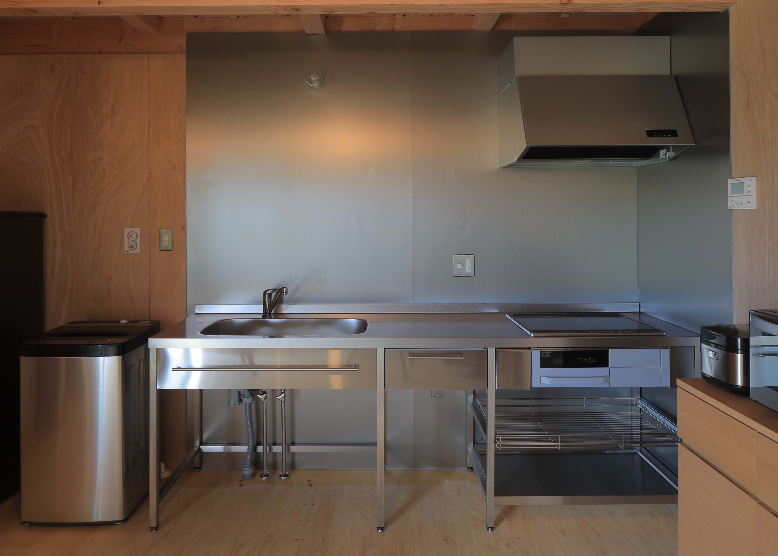 ステンレスと木の暖かみを合わせることで洗練された空間。