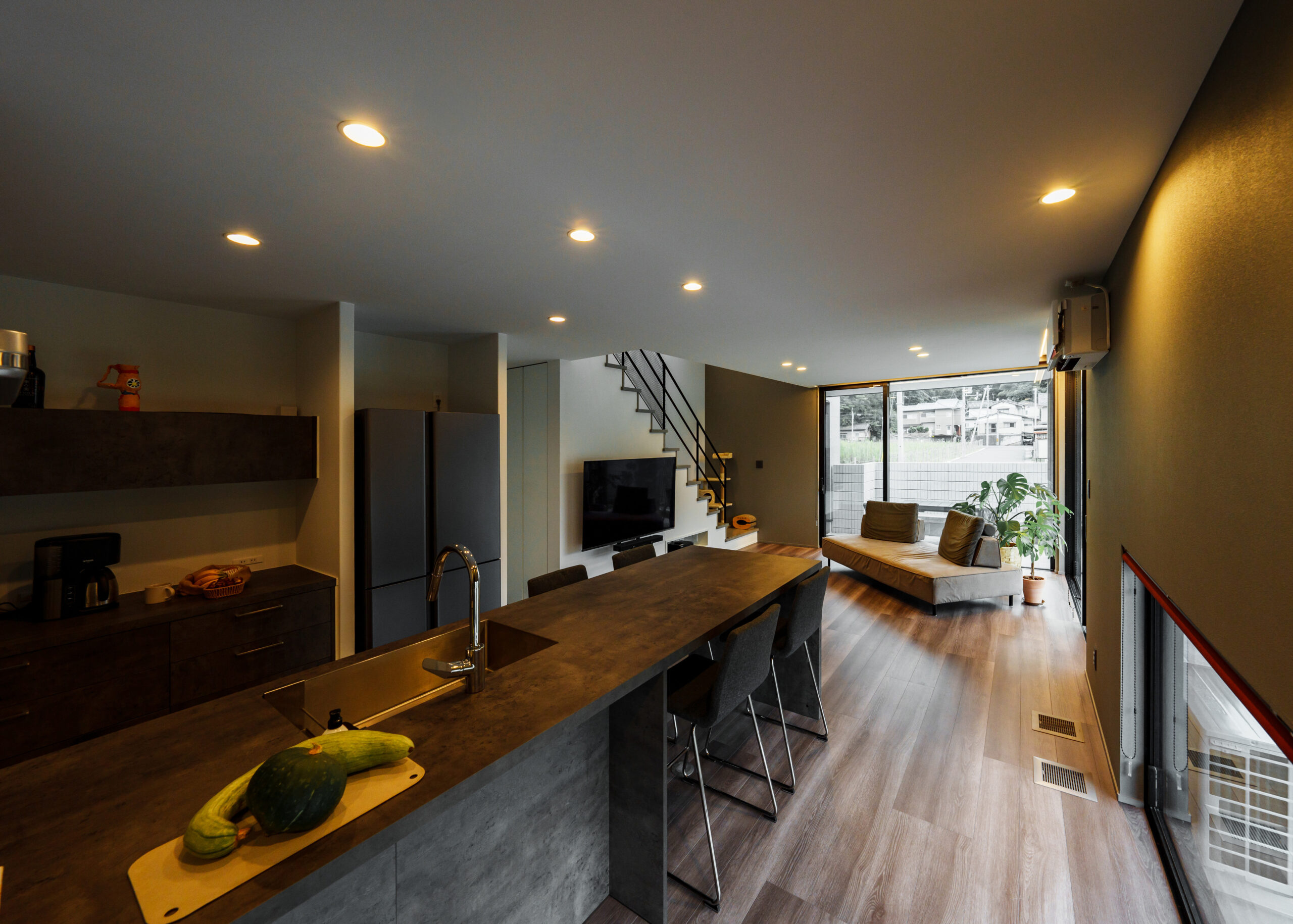 奥様:なんとなく、最初は見た目だけで入ったところはあったんですけど、全部ハイドアにしました。全員背が高いんですけど、それでも圧迫感を全然感じないので、それが良かったかなと思います。本当は窓ガラスも全部天井までにしたかったんですけど、それは出来ず、外を感じられるかな?とちょっと思いました。でも、3枚、4枚の窓だけでも外を感じられる空間にしてもらえたので良かったと思います。