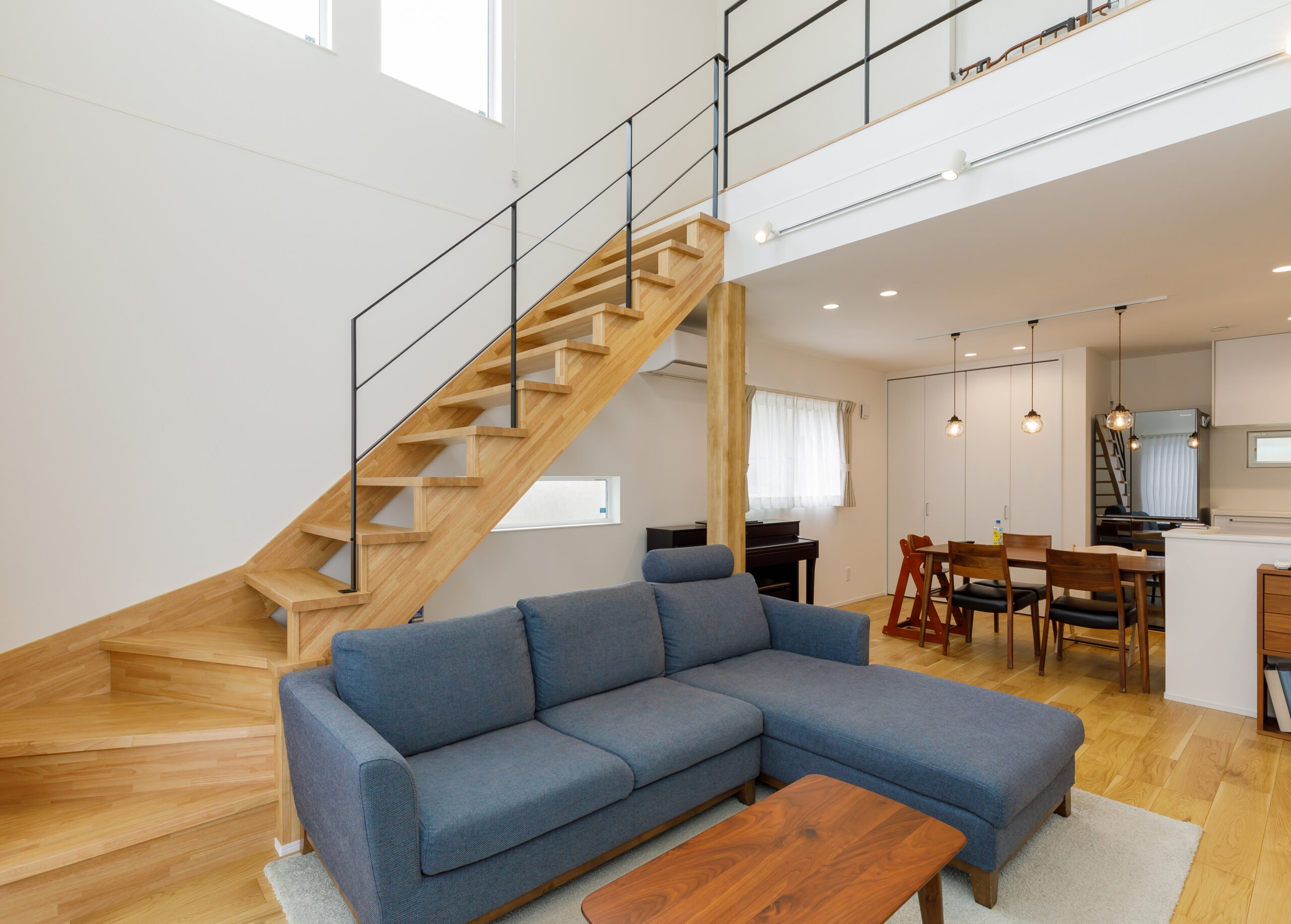 奥様:とにかく明るい家がよくて、もうほんとに前のお家が暗かったので子供たちにもあまりよくないなと思って、明るいお家って思った時にやっぱりいろんなお家をネットとかで写真を見ると吹き抜けの家ってすごく明るくて、もうほんとに電気は日中つけないで過ごせるので、そういうお家にしたいなと思って吹き抜けはこだわっていました。